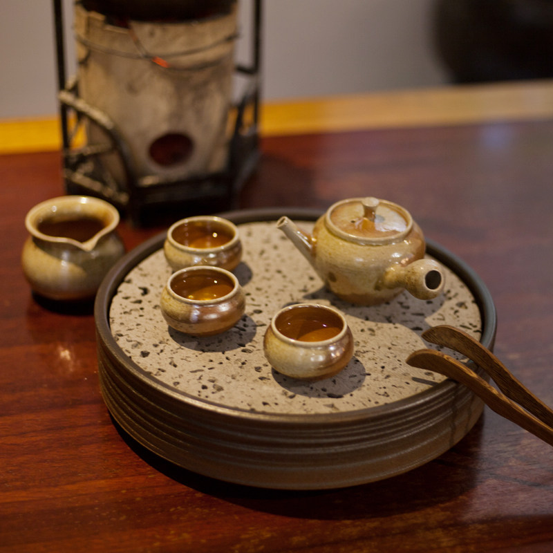 Five rows of tea tray volcanic rock bronze made of bamboo