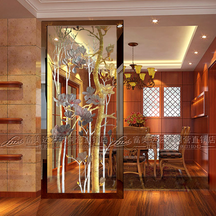 Art glass screen partition entrance door shoe cabinet partition transparent glass sliding door living room translucent screen orchid tree