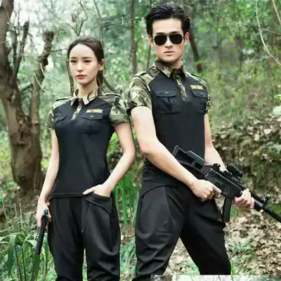 Sailor dance costume elastic cotton lapel plus size men and women models 2021 Spring and Autumn new black short sleeve camouflage T-shirt