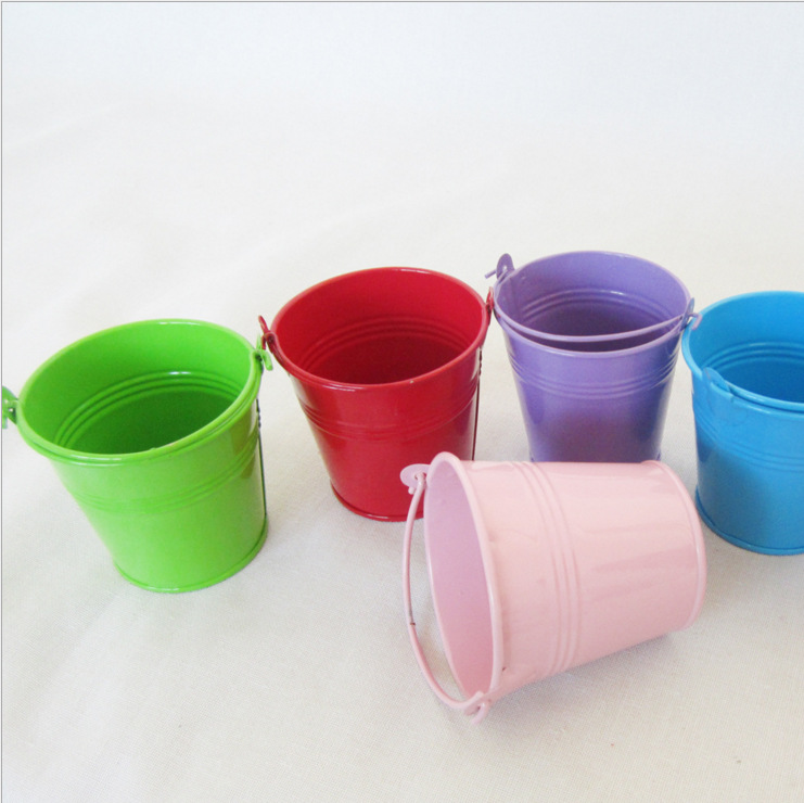 Small Iron Bucket Shooting Props Simulation Plant Bucket Home Residence Decoration Candy Pure Color Flower flower Flower Inserted Flower Pot containing barrel