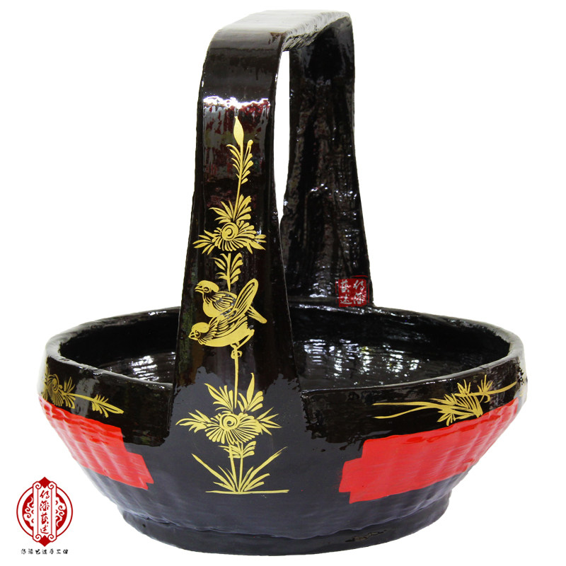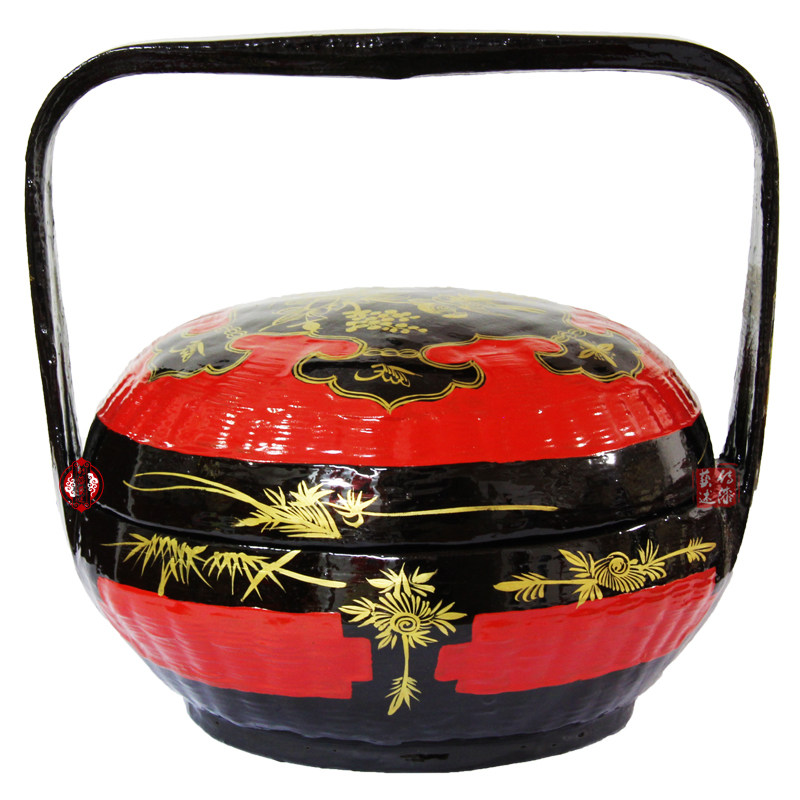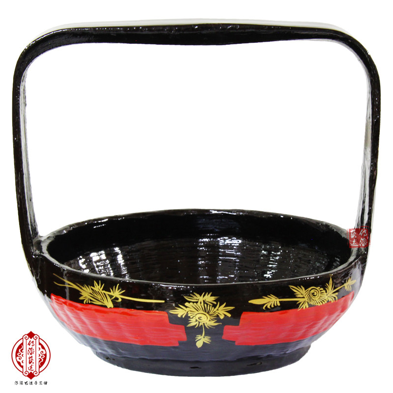 Yongchun lacquer basket hand-painted large lacquer bamboo weaving wedding incense basket worship basket folk lacquer art Minnan god