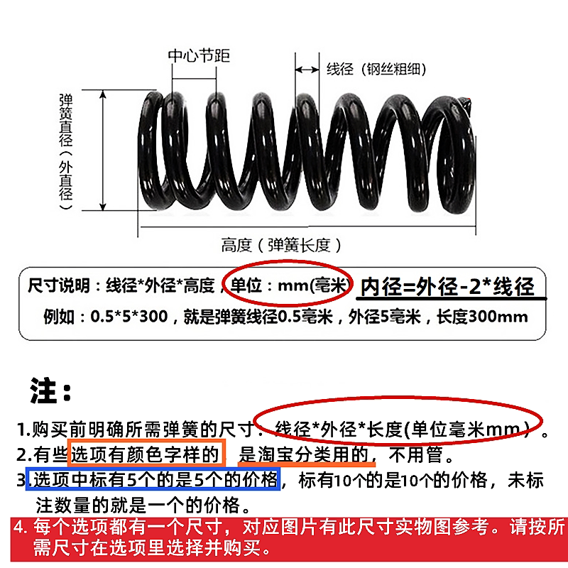 Spring steel wire 2 5mm outer diameter 14-18 20 22 24-58 strong pressure mechanical pressure mechanical pressure long compression spring