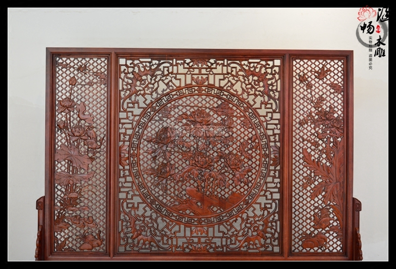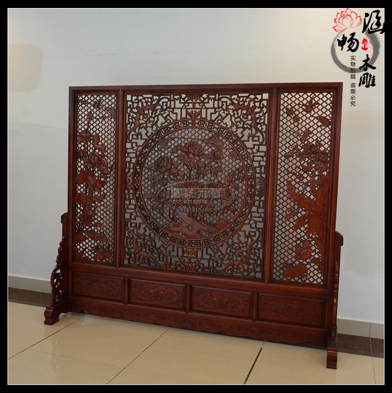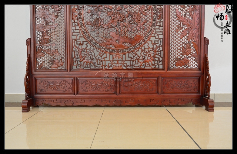 Dongyang wood carving blossom rich floor-to-ceiling screen solid wood double-sided carved interpolation living room entrance partition antique seat screen
