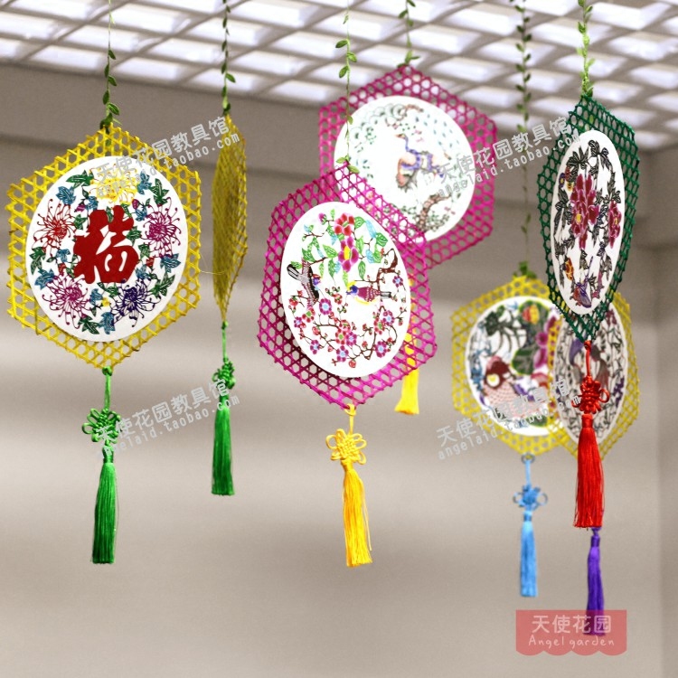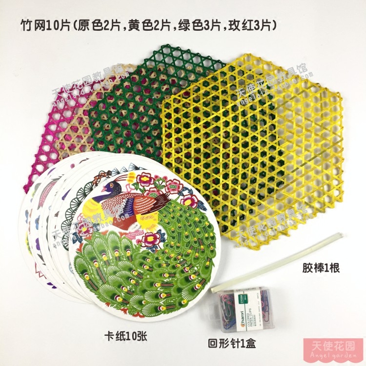 Bamboo made of 10 pieces (original 2 yellow 2 rose red 3 green 3) Cardboard 10 Zhang Sets Green Flower Cloth 1 Suit (Send Glue Stick Back Thread Needle) China Knot Purple China Knot Light Blue China Knot Yellow