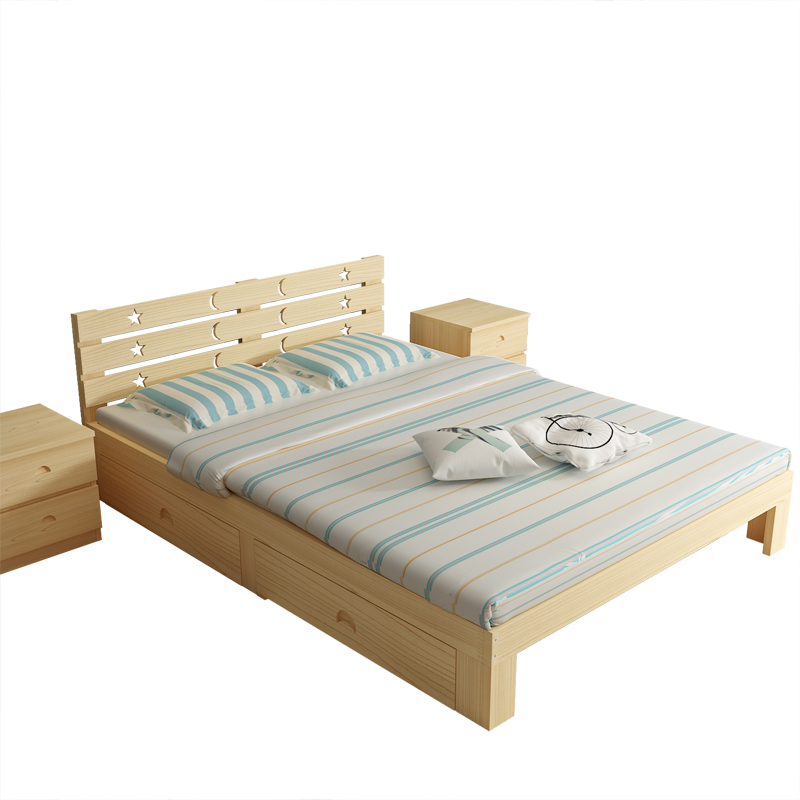 Solid wood bed tatami full loose wood bed linen bed 1 21 0 adults Double beds Children's beds 1 5 1 8