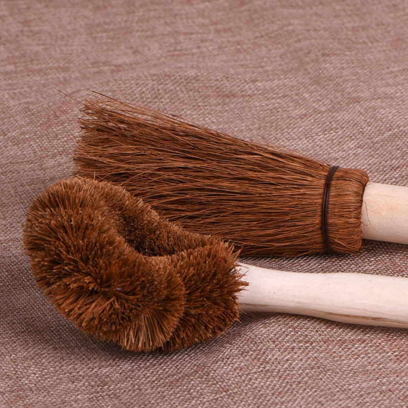 Pot brush coconut palm non-stick oil long handle brush kitchen brush strong decontamination cleaning brush natural pot and bowl brush combination