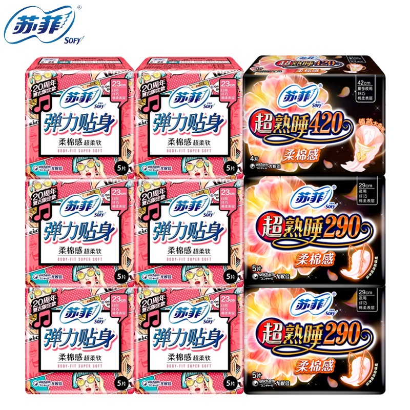 Sufi sanitary cotton female elastic close-fitting pure cotton soft daily night use combined group student aunt towel whole box
