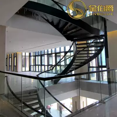 King Earl rotating staircase curved custom glass guardrail indoor double beam steel wood whole villa attic duplex