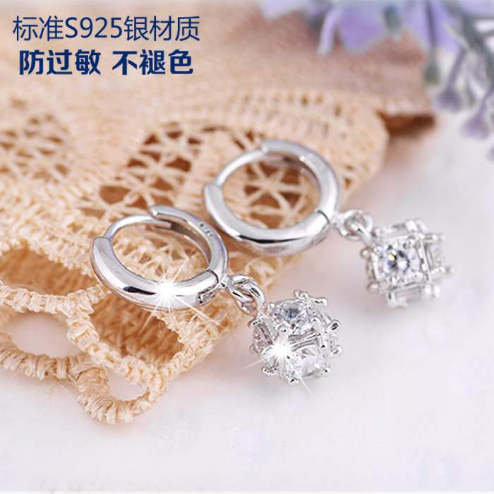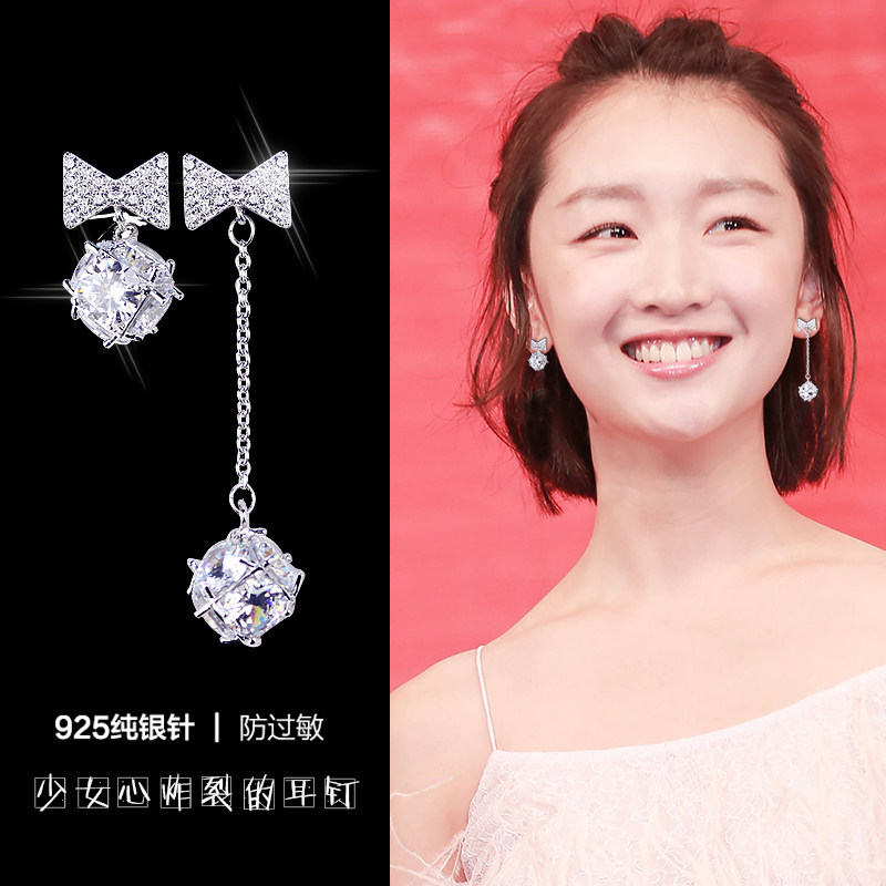 Korean style temperament long synthetic crystal earrings sterling silver super flash loose diamond zircon earrings birthday hypoallergenic women's models