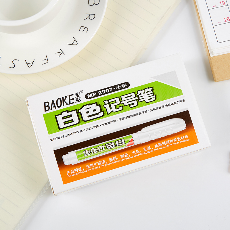 12 Pack Baoke MP2907 White Oily Marker Art Advertising Hook Line Marking Small Single Head Macs