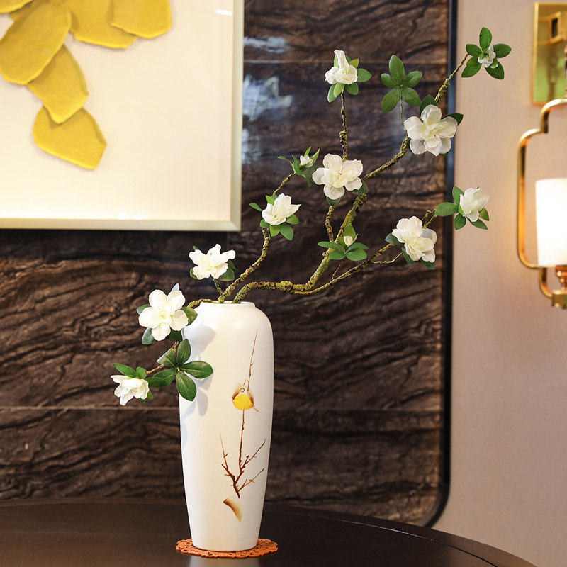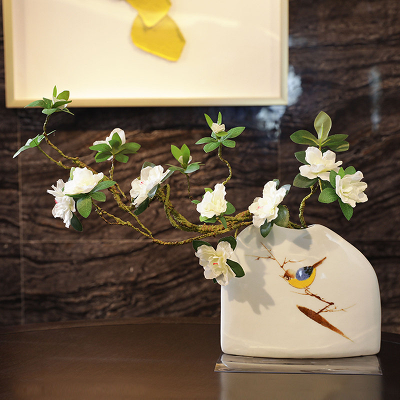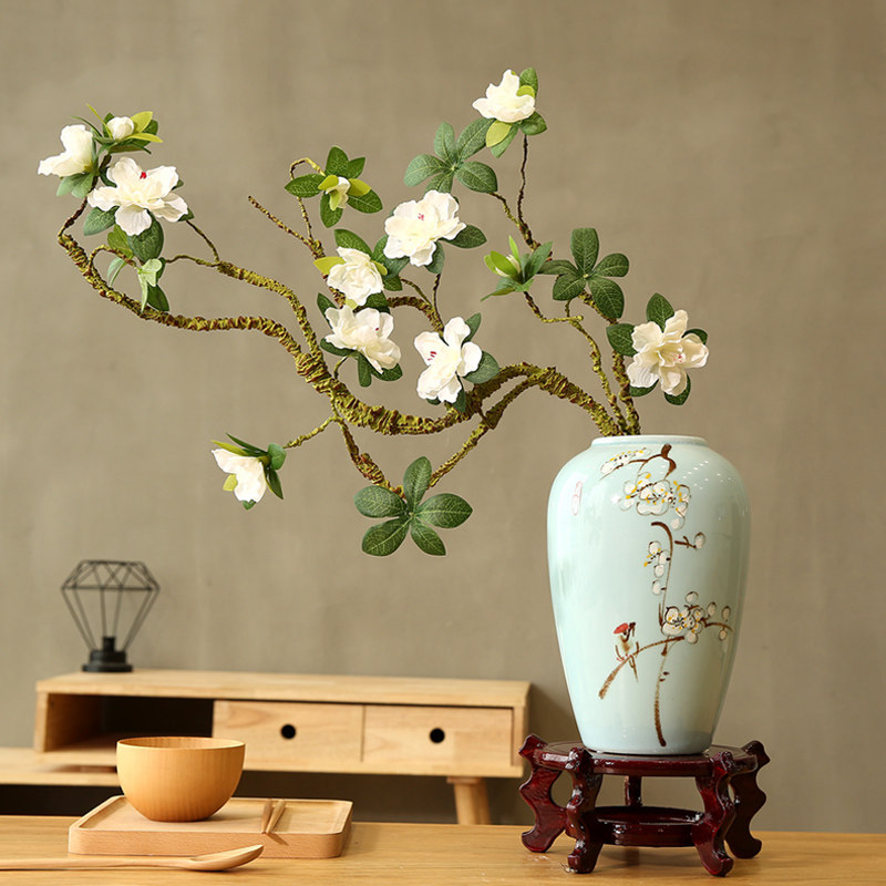 Simulation azalea fake flower silk flower branch shape Home decoration Chinese Zen ceramic vase placement floral art