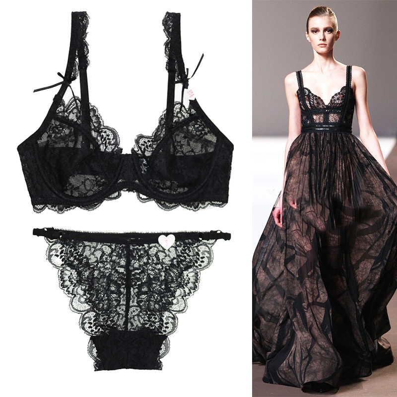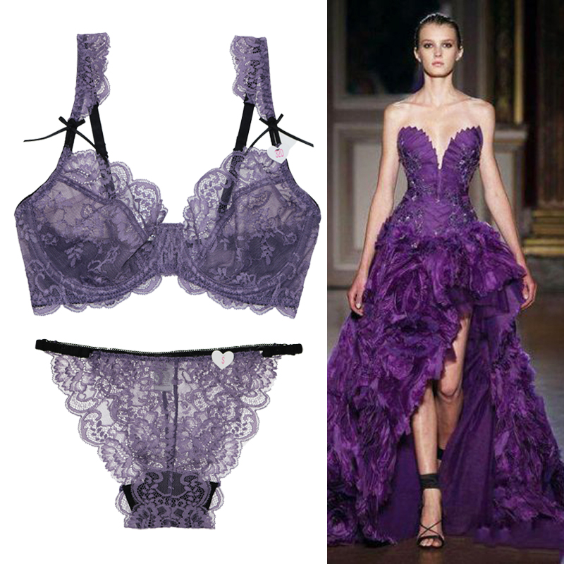 New ultra-thin underwear female sense bra large chest small transparent thin section no sponge lace bra set large size