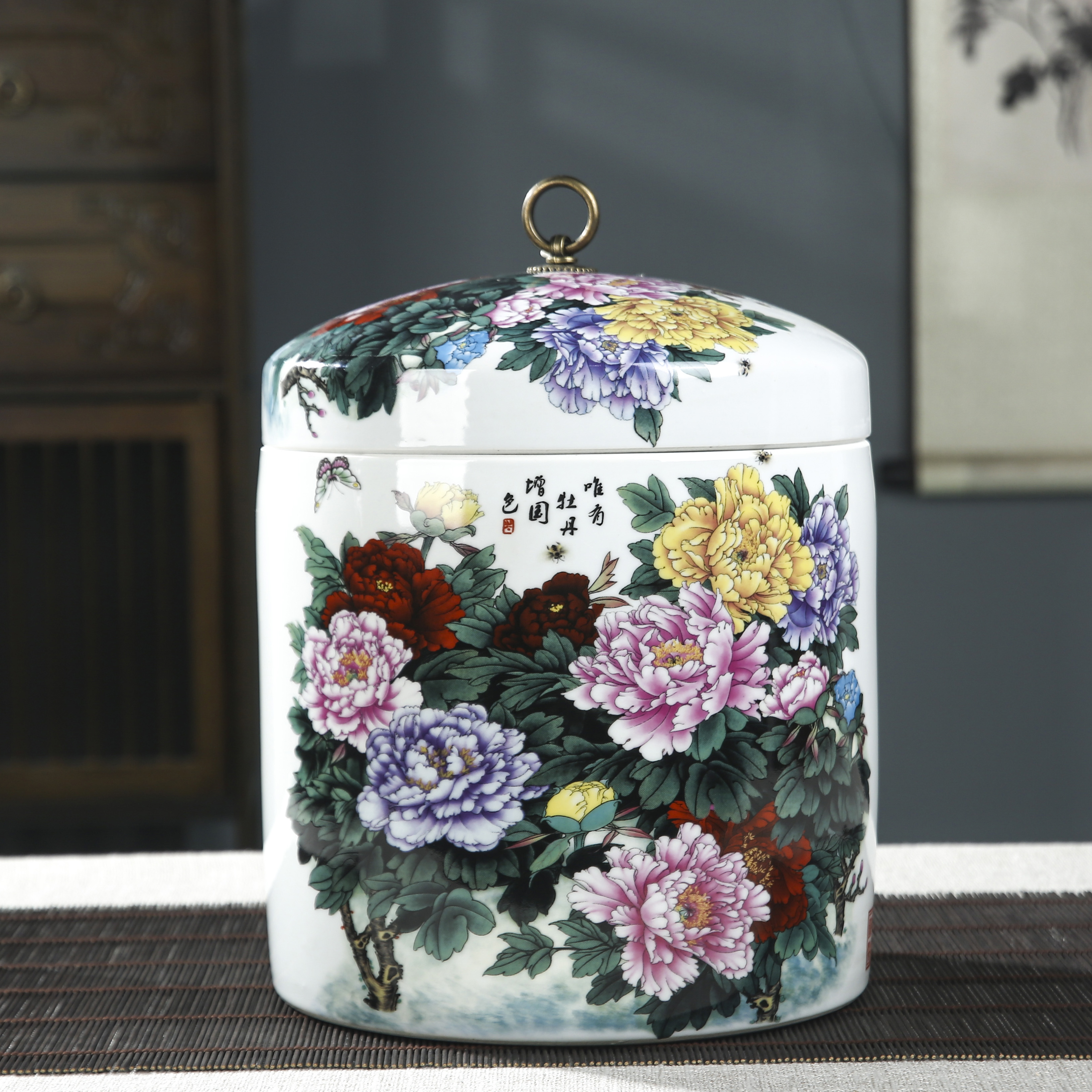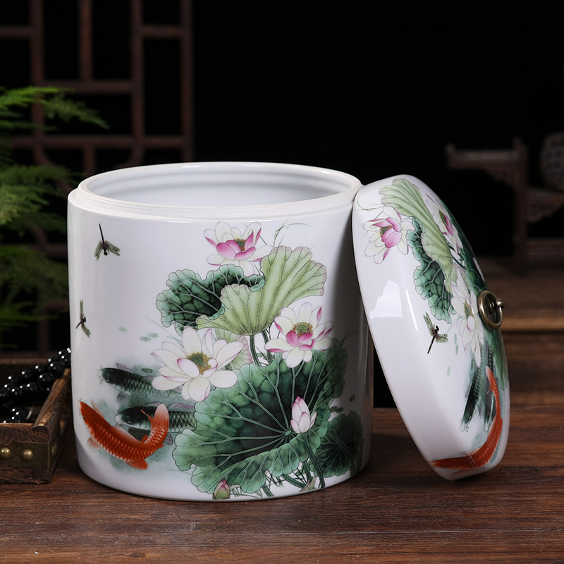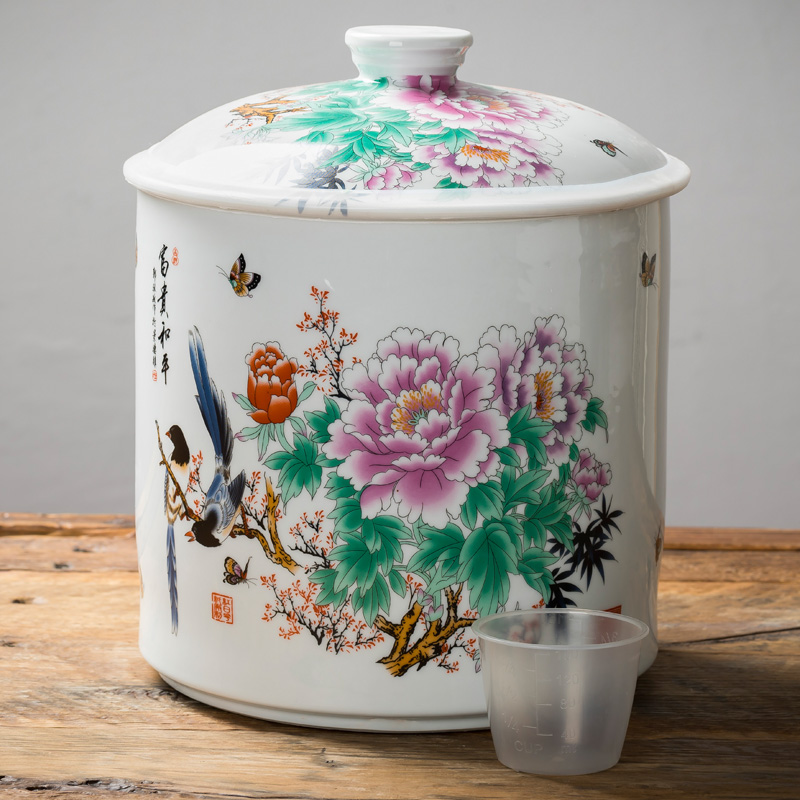 Jingdezhen ceramic rice cylinder 10 kg rice drum with lid sealed can storage tank rice storage tank storage rice tank household flour bucket insect prevention