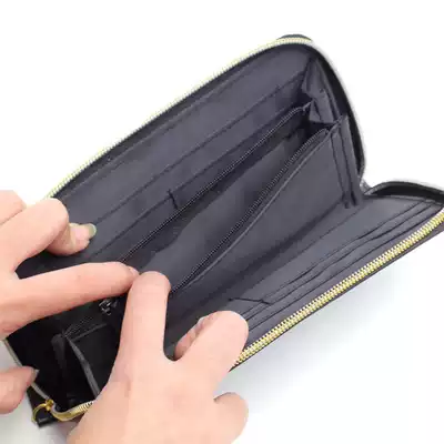 This Japanese magazine appendix black pu long wallet zipper multi-card clutch