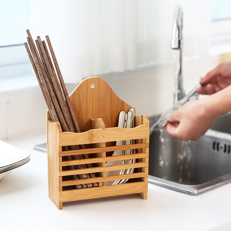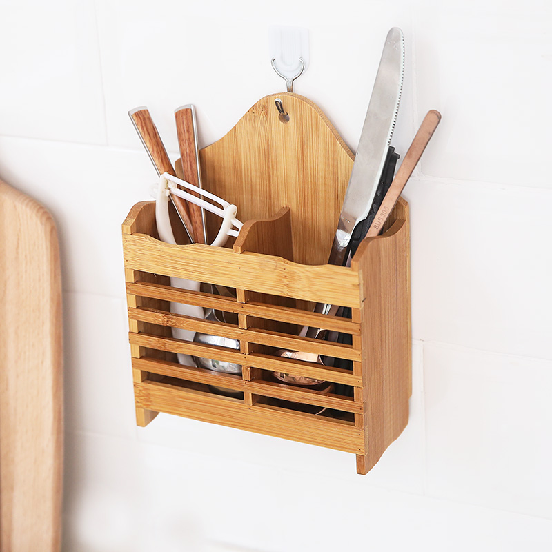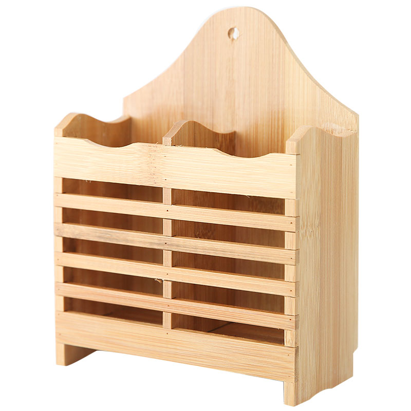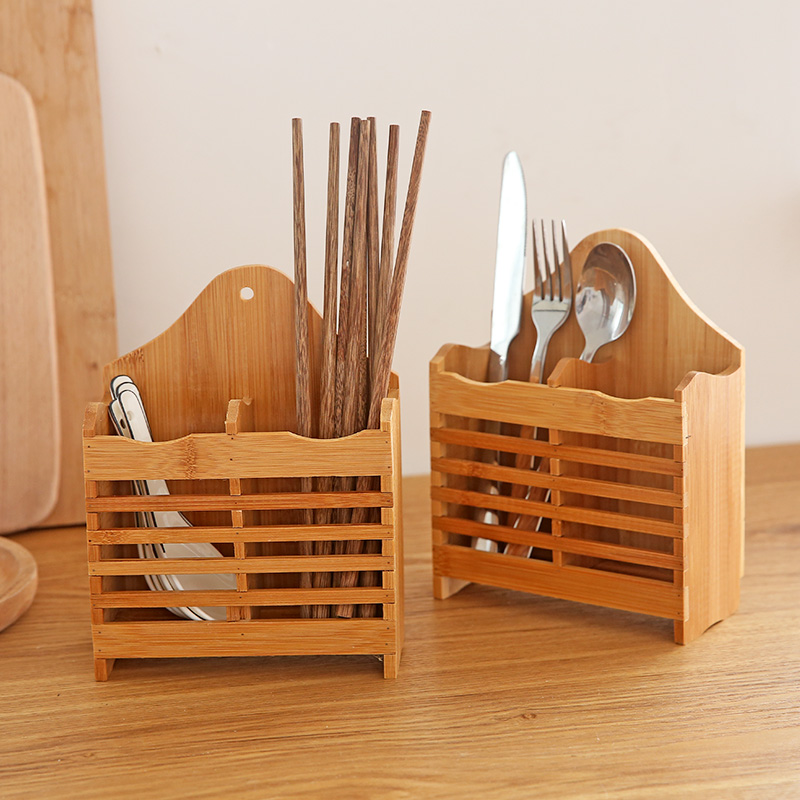 Home Multifunction Bamboo Chopstick Cage Creative Wall-mounted Chopstick Silo Box Drain Chopsticks Rack Kitchen and wood shelve
