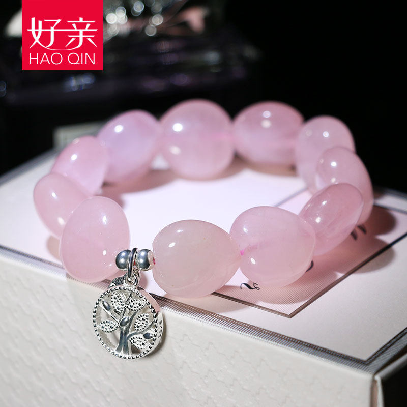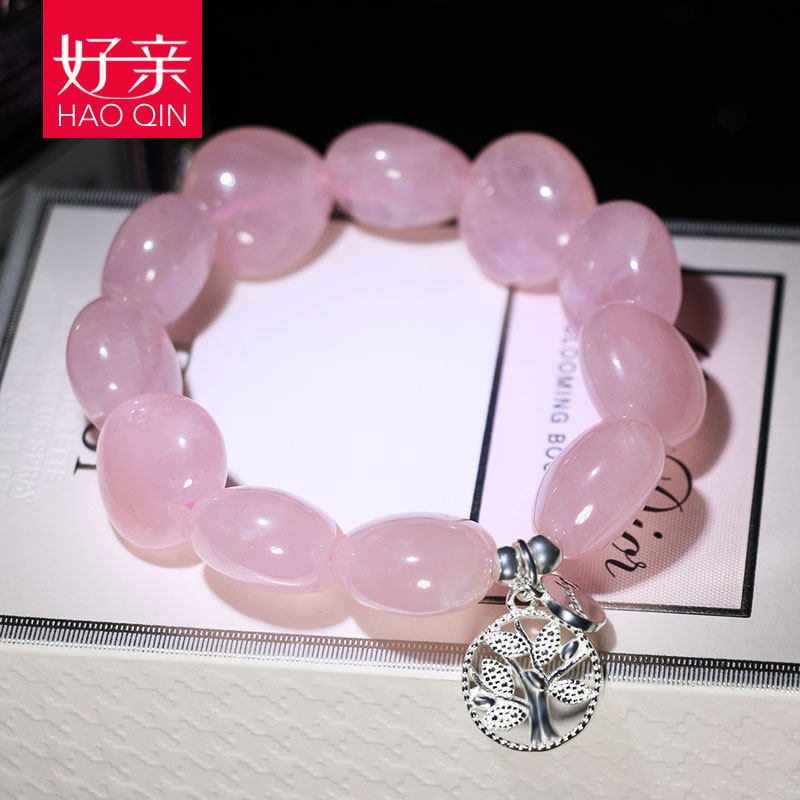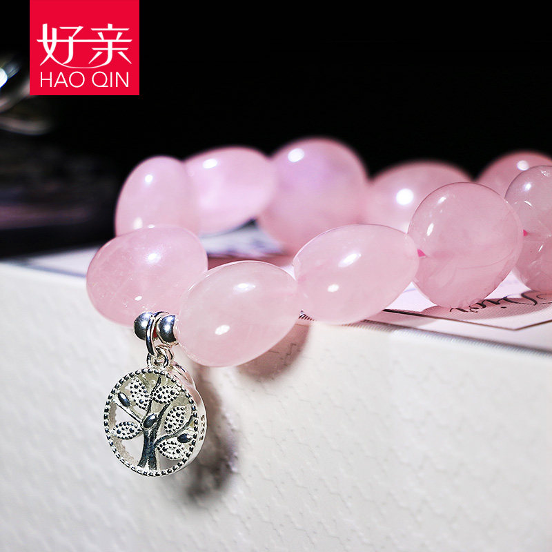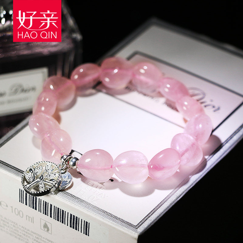 Good pro-natural pink crystal handmade female Peach Blossom Single Circle Heart-shaped Pink Crystal Handstring Japan-ROK s925 silver Birthday Gift