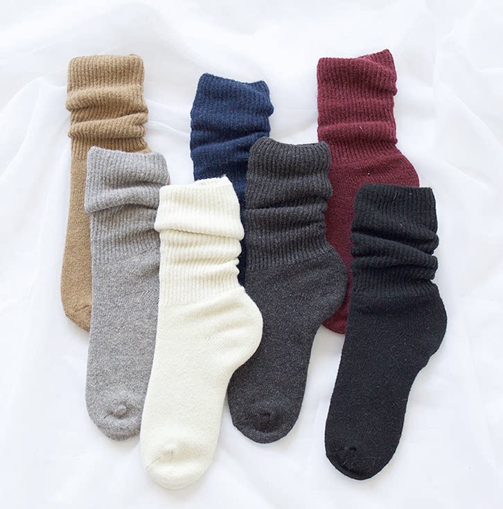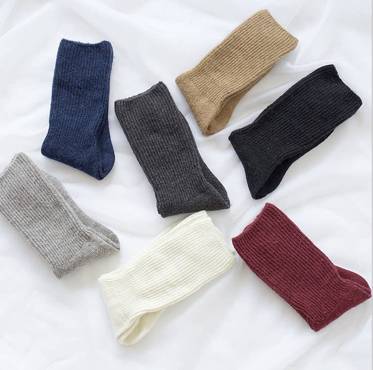 New autumn and winter rabbit wool bubble socks thickened warm Japanese roll edge socks plain earth color men and women