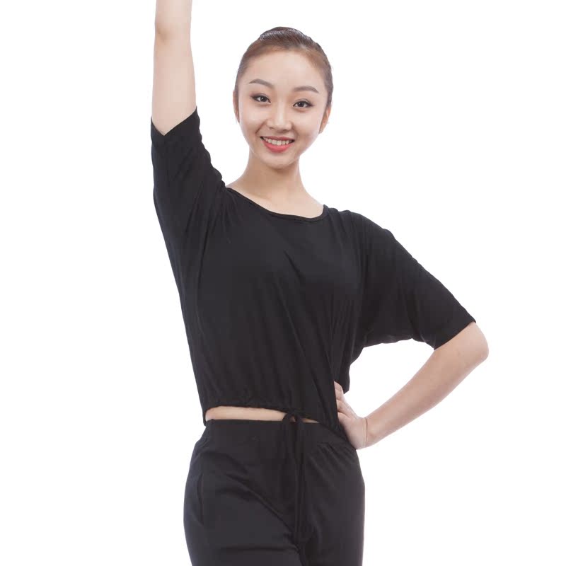 Summer new modern bat Short sleeves Latin dance practice Dance Suit Women Adult blouses with loose rounded collar