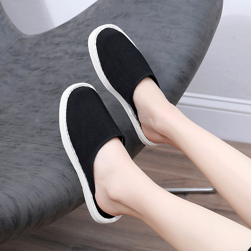 Black Baotou slippers female mid-aged comfort Spring and autumn women's shoes Handmade Thousand Floor Home Family Non-slip Cotton Shoes Women