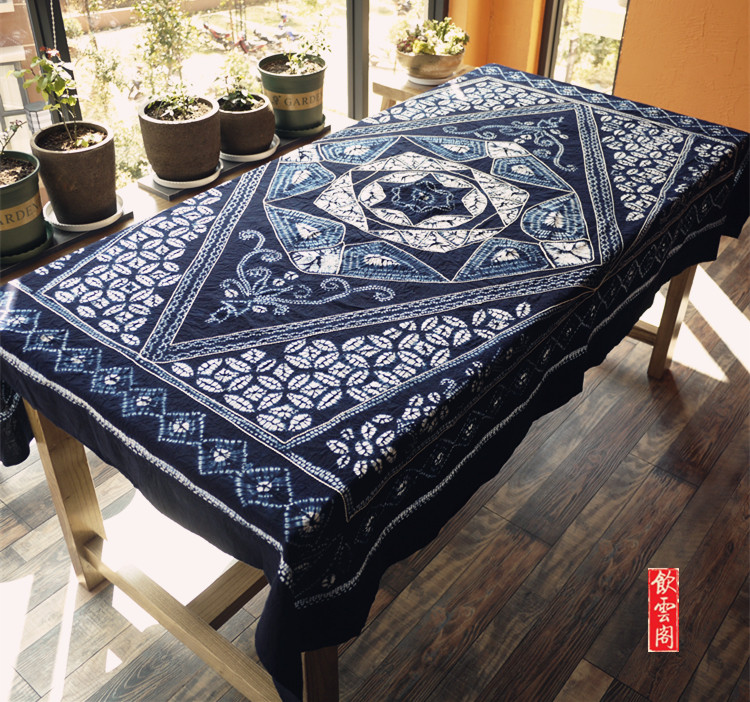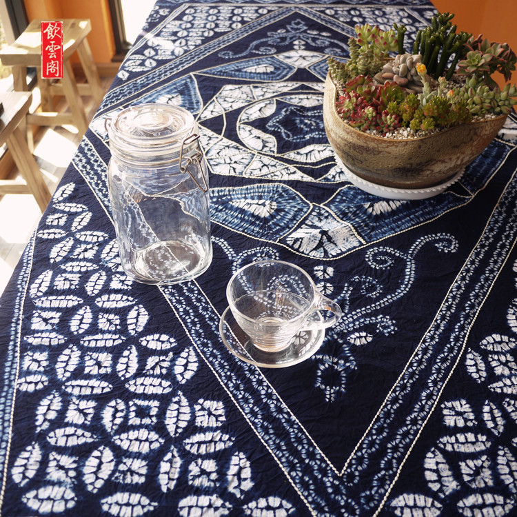 Yunnan Dali handmade home fabric tie-dye cloth blue dyed old flower rectangular cotton tablecloth wall background decoration