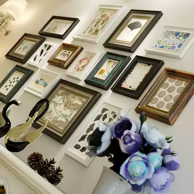 Solid wood American creative photo wall Modern minimalist living room photo frame wall European-style porch combination painting punch-free hanging wall