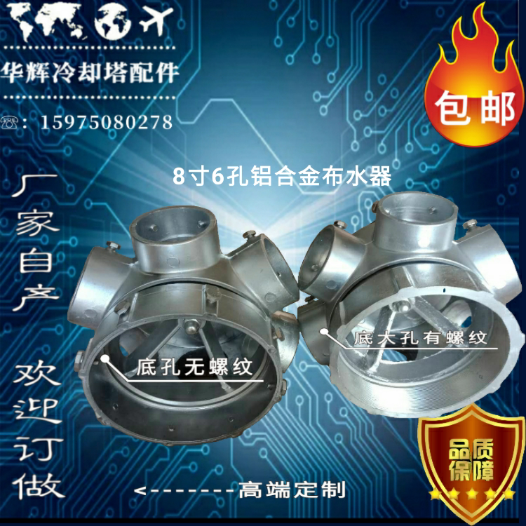 8-inch 6-hole standard water distributor 8-inch 6-hole stainless steel bearing spray chrome-plated water distributor 8-inch 6-hole aluminum alloy water distributor (with thread at the bottom)
