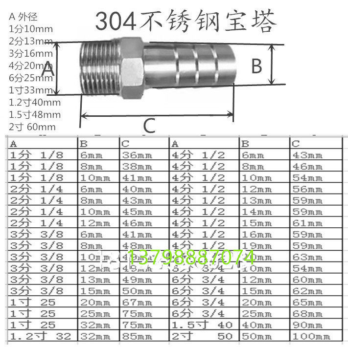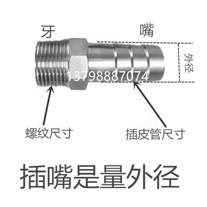 304 stainless steel hexagonal pagoda connector hose connector leather pipe connector 1 point 2 points 3 points 4 points 6 8 10 1
