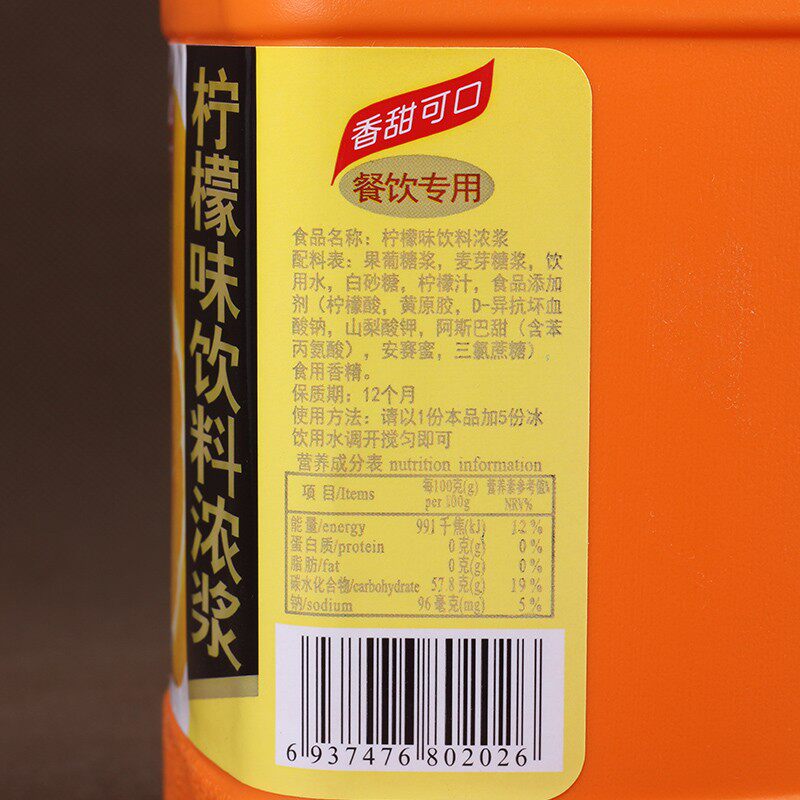 Net content of lemon juice