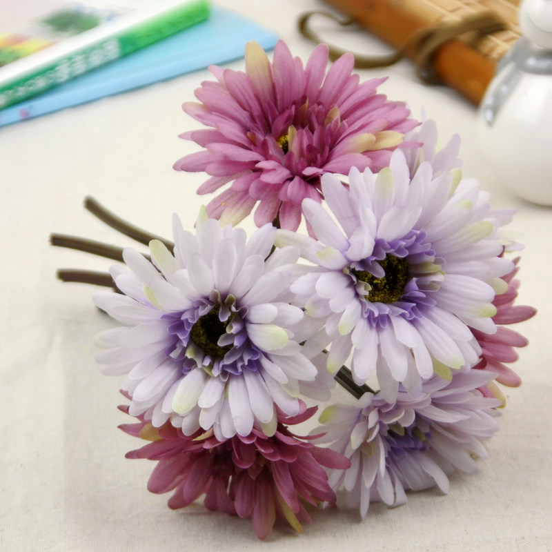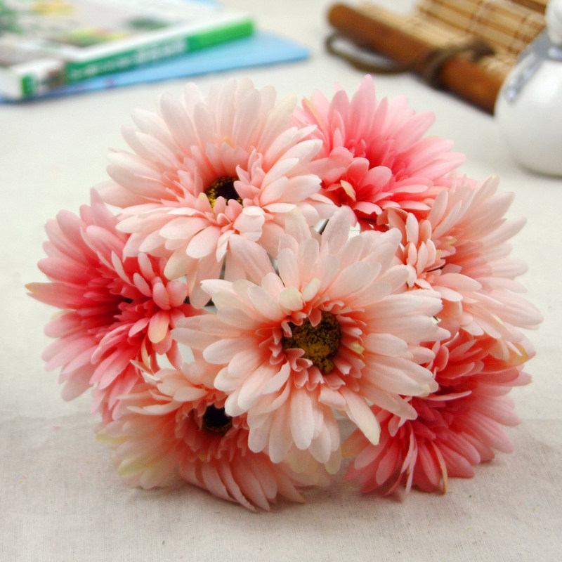High simulation gerbera simulation bouquet wedding hand stick flower daisy decoration dining table coffee table sunflower fake flower silk flower