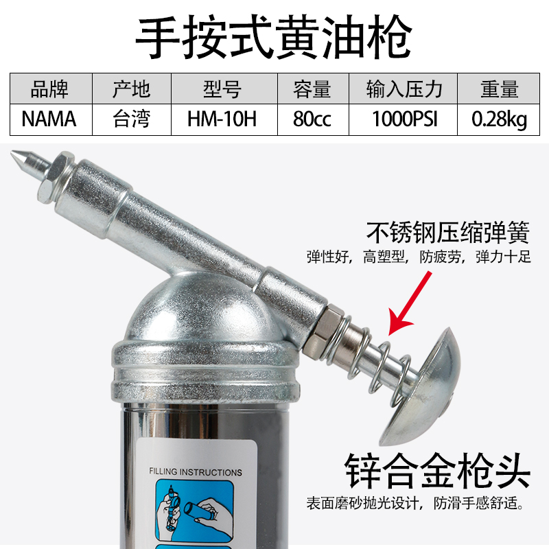 Taiwan Nama NAMA Hand-by-type oil gun obsessed with your type Yellow grease gun 80g Manual yellow oil gun HM-10H