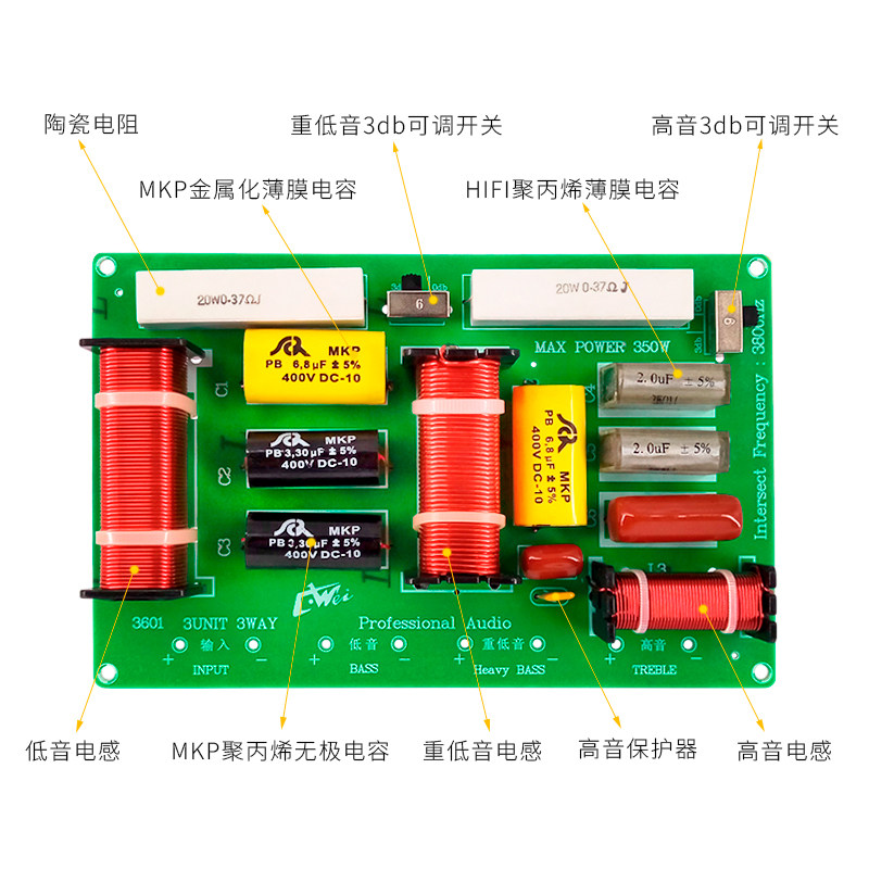 Stage speaker divider card box divider high, low, heavy and low three-way frequency divider audio upgrade tool