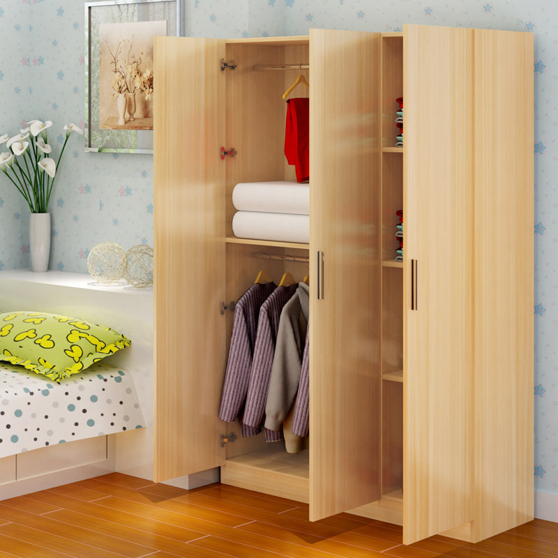 Simple wardrobe wooden assembly wardrobe adult panel solid wood cabinet 3-door wardrobe children's storage cabinet balcony cabinet