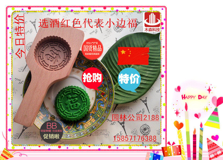 Rice Cake Print Baking Mold Import Woody Handmade Fushou Peach Rice Cake with multiple Qingming Moon Moon Cakes