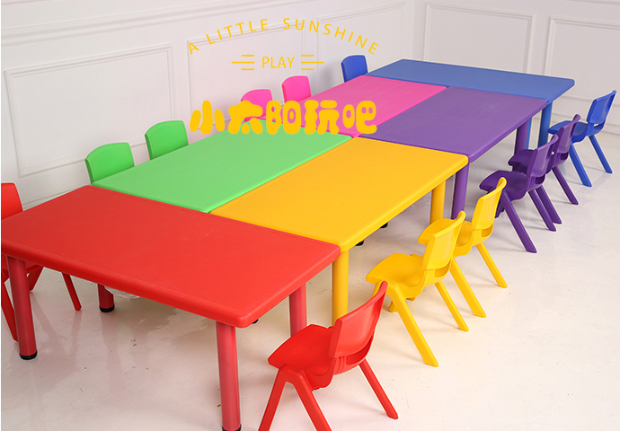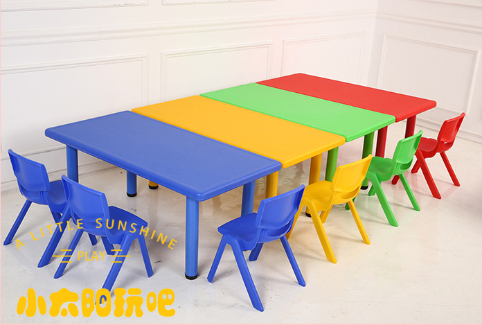 Special table and chairs for kindergartens 6-8 eight-person long table plastic table and chairs Children student table can lift