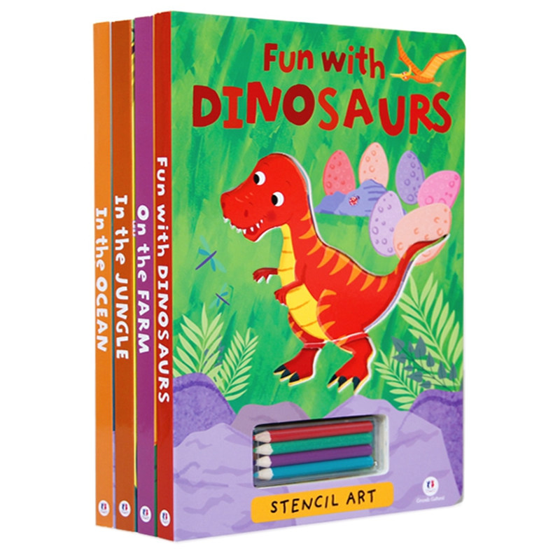 Tong anecdology Cute Original Painting English Original Send Painting Pen Hollowed-out Stencil Painting Enlightenment Drawings Ben Toys 4 paragraphs-Taobao