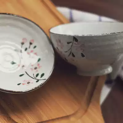 (Hi dish) Japanese style and style hand-painted cherry blossom underglaze ceramic bowl