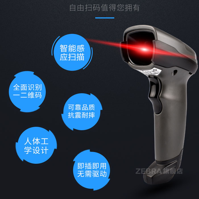 ZEBRA zebra symbol DS4308-SR HD XD Light industry two-dimensional code high-precision barcode scanner Mobile payment WeChat supermarket express scanner Warehouse