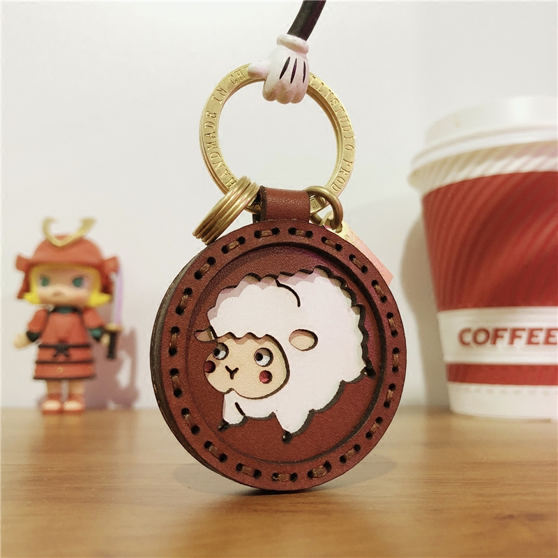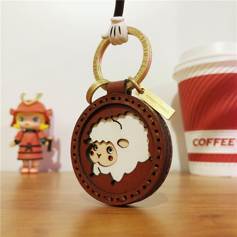 HULLY -- original little goat zodiac pendant handmade cow leather car key buckle bag hanging adorned birthday present-Taobao
