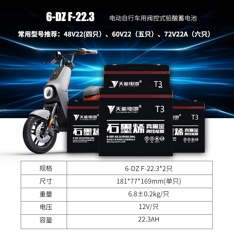 Tianneng True Black Gold Battery 48V22AH 60V72V22AH 6-DZFM-22 Electric Vehicle Battery Trade-in