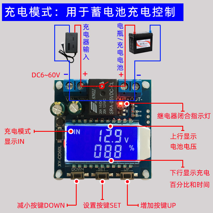 6-60V battery charger protection switch battery lithium battery charging control module 30A universal model