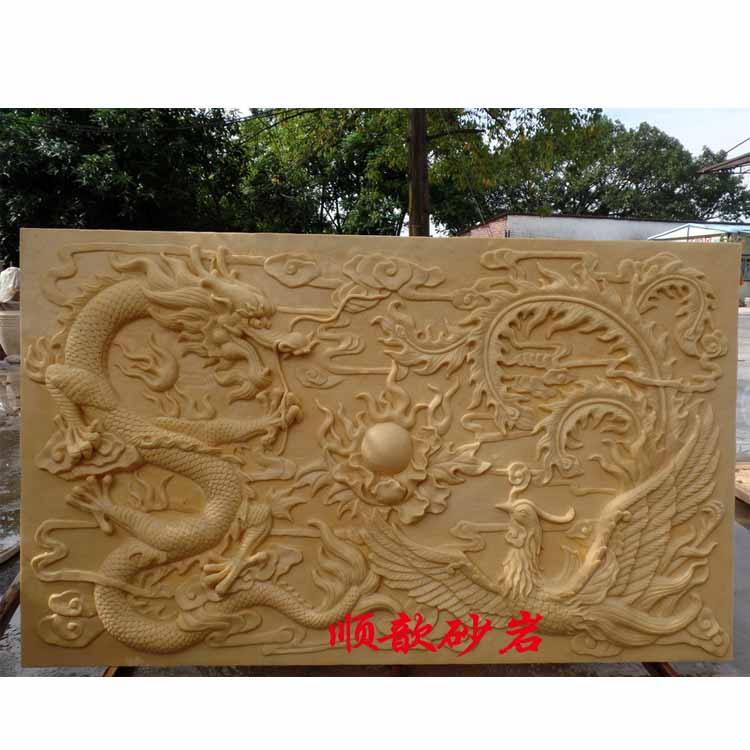 Shunxin Sand Rock hotel lobby background wall three-dimensional mural exterior wall decoration Home decoration European relief printing Dragon and Phoenix map