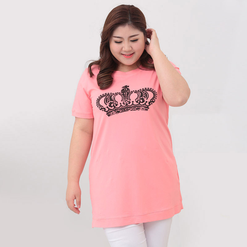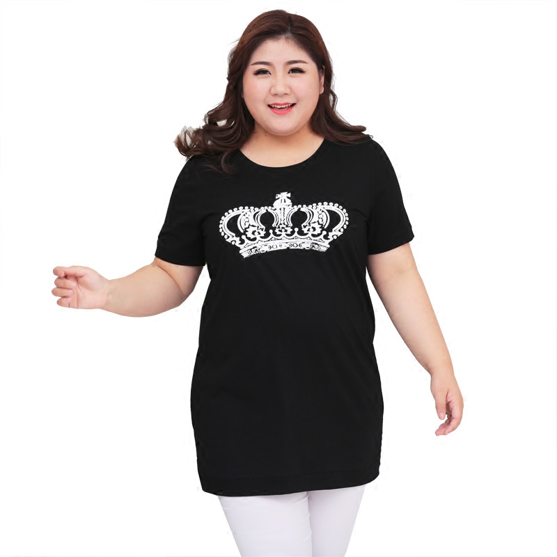Q Summer clothing plus fertilizer for overweight women's clothing short sleeves pure cotton T-shirt with long version loose and fat people covered with 200 catty blouses