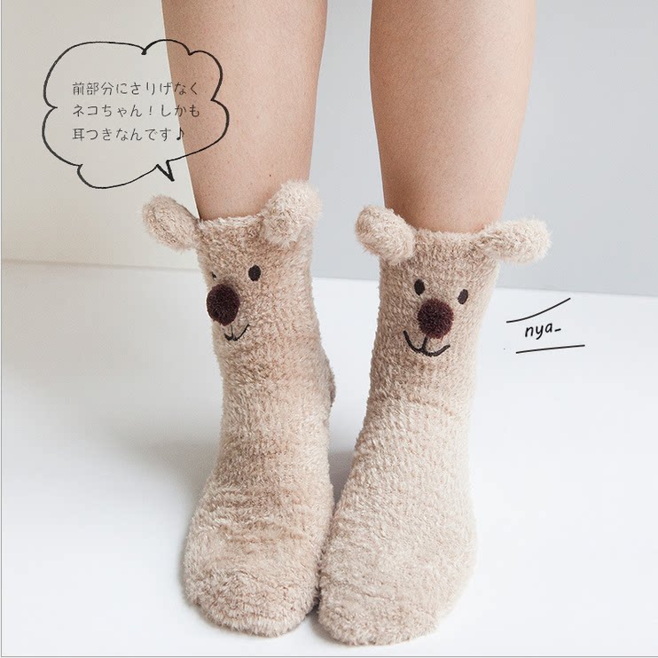 Cute Girl Heart Day Department Soft Mix Cute Cartoon Solid Ears Warm Home Socks Non-slip Floor Socks