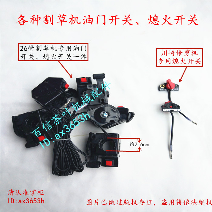 Push-button flameout switch Toggle flameout switch (for tea picking machine) Toggle flameout switch (for trimmer) Toggle custom flameout switch (for tea picking machine) 26-tube lawn mower throttle flameout integrated switch