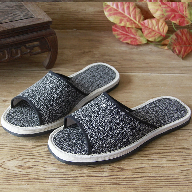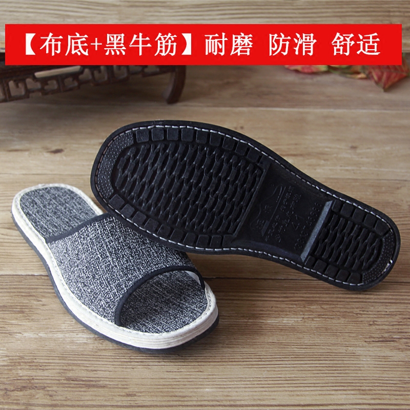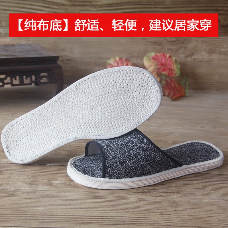 Breathable melaleuca bottom cloth shoes linen spring and summer open toe word drag men and women open home bedroom non-slip cloth bottom slippers