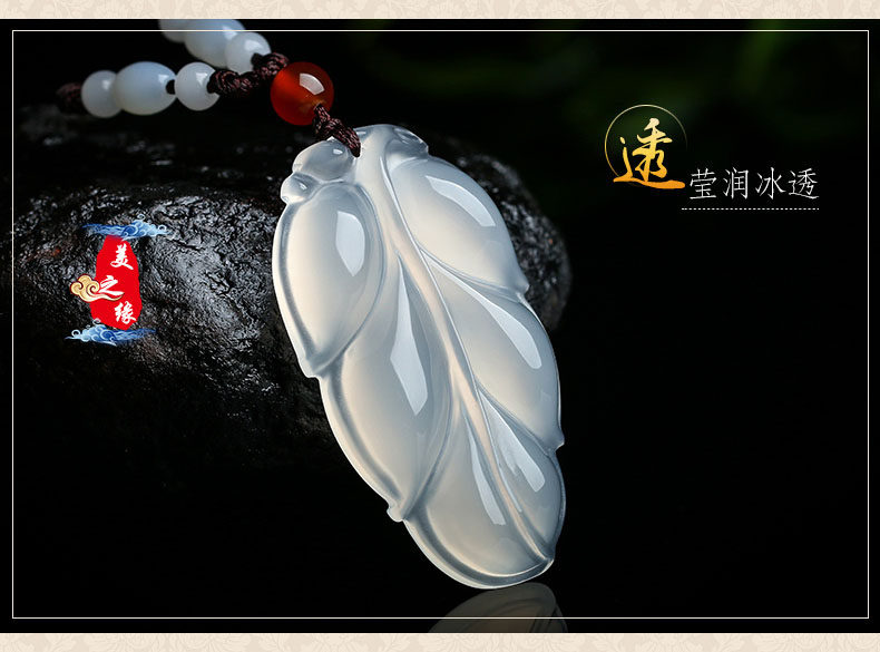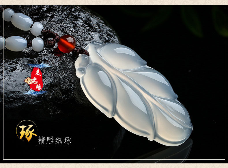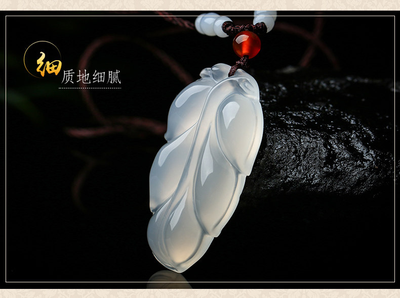 Natural ice white chalcedony agate leaf pendant Gold branch jade leaf pendant overnight fame pendant Jade pendant jewelry