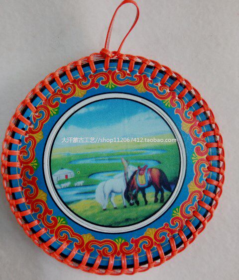 Small leather mirror craft mirror Inner Mongolia handicraft grassland landscape map gift printing hanging mirror diameter 9cm