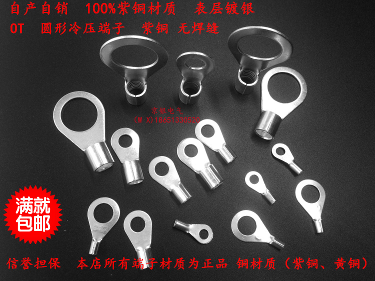 OT4-12 copper cold-pressed terminal O-type round bare end wire nose wiring ear 1000 pieces 0 7mm