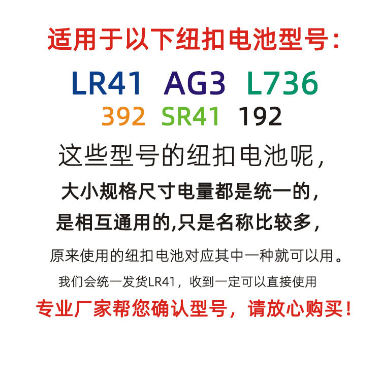 LR41AG3 button battery L736 luminous digging earspoon 392 electronic SR41 fish drift ring light shoe lamp