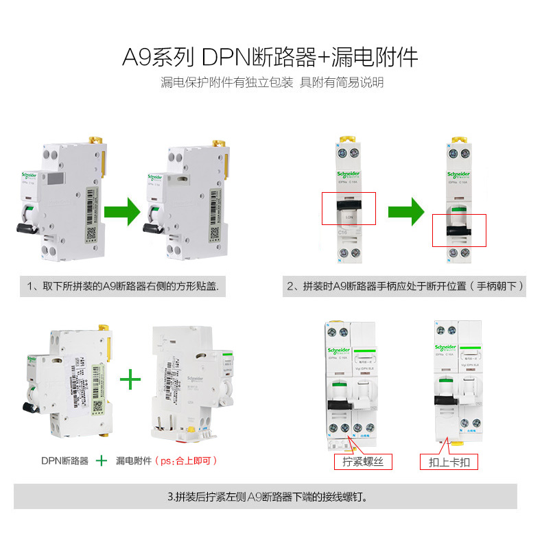 Schneider Circuit Breaker fifth generation A9 Leakage protector 1P N-4P 25 40 63 125A Leakage accessories